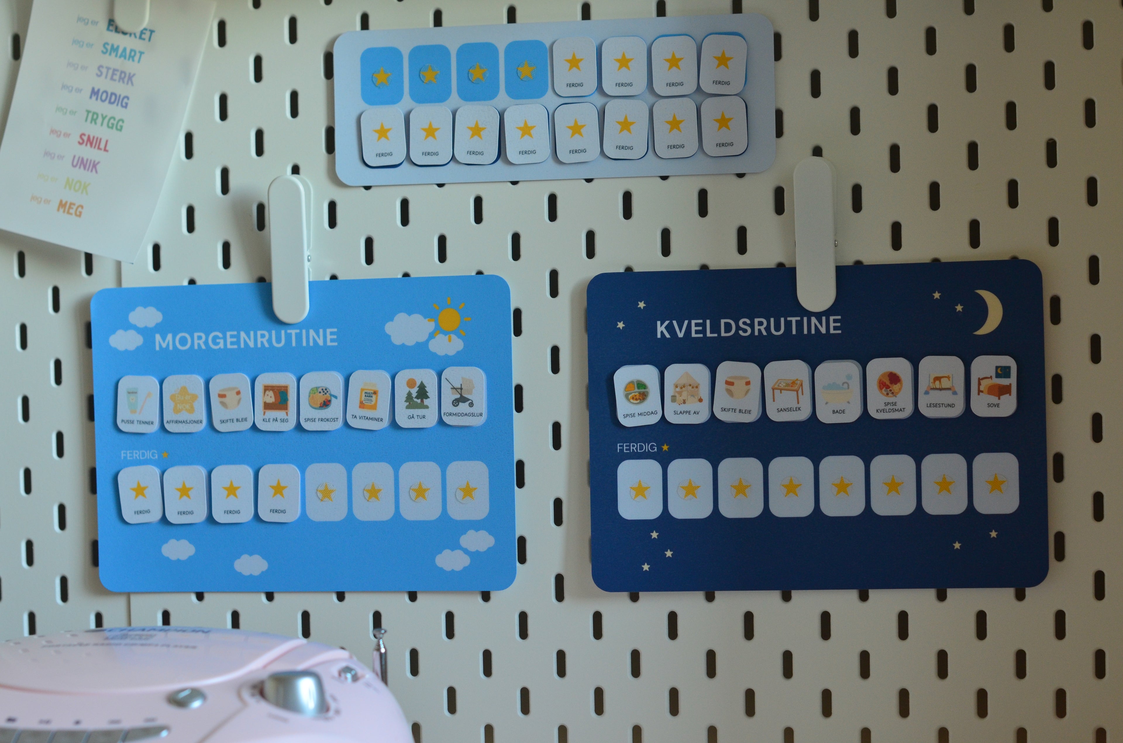 Morgen- og kveldsrutine – Komplett visuell rutine med stjerner (70+ ikoner, print ut selv)